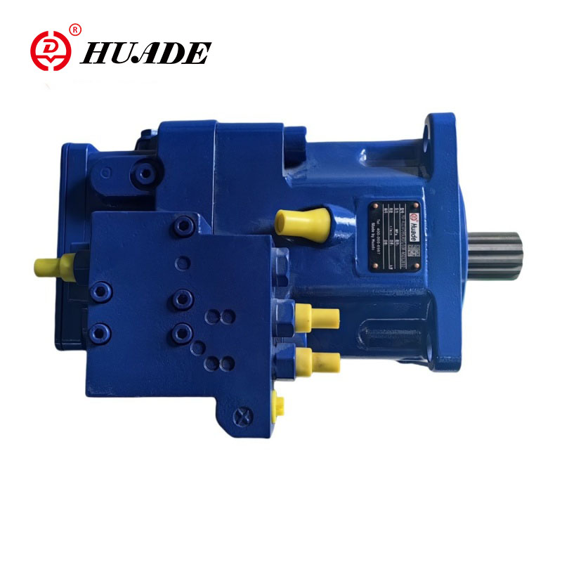 Huade brand A11VO swash plate axial piston variable pump is used for hydrostatic transmission in open circuit hydraulic systems. The flow rate of this axial piston pump is proportional to the transmission speed and displacement. By adjusting the swash plate angle, the flow rate can be changed steplessly. The A11VO pump can match Rexroth’s in performance.