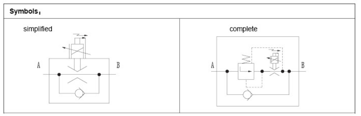 They basically comprise of the housing (1), proportional solenoid with inductive position transducer (2), measuring orifice (3), pressure compensator (4), stroke limiter (5), as well as an optional check valve (6).